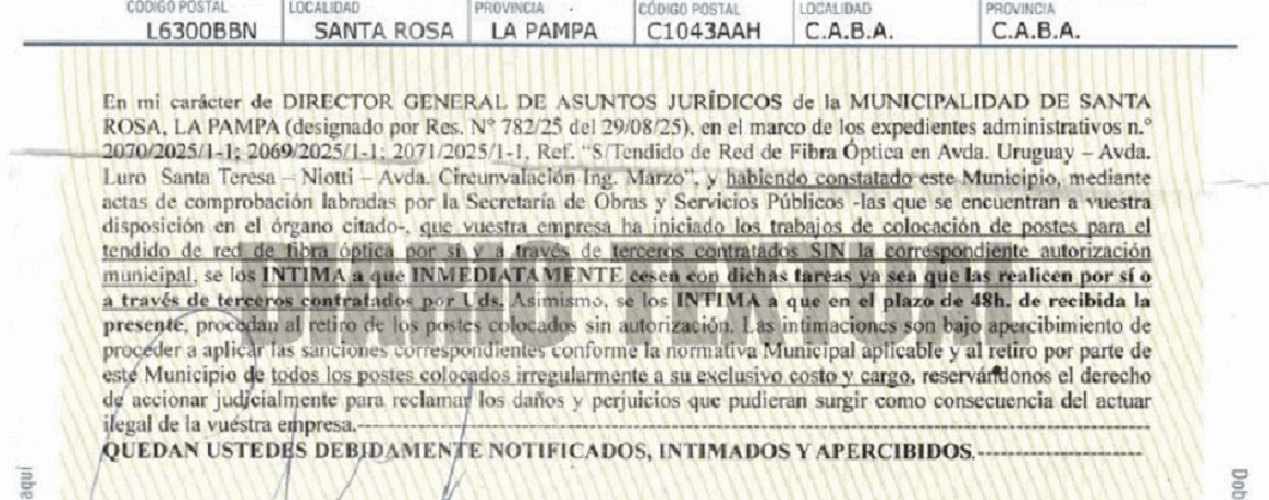 POR MIGUEL RODRÍGUEZ VILLAFAÑE | La fusión de Telecom y Telefónica bajo el control del Grupo Clarín, por u$s 1.250.000.000, concentra más del 70 % de los servicios de telecomunicaciones del país y pone en riesgo la competencia y la pluralidad informativa. Pese a las advertencias de la Secretaría de Comercio, el conglomerado avanzó en obras irregulares en La Pampa, generando la reacción del movimiento cooperativo y del municipio local, que intimó a la empresa Telefónica, integrante del Grupo Clarín, a levantar la colocación de postes para el tendido de red de fibra óptica por no contar con la autorización de la comuna.